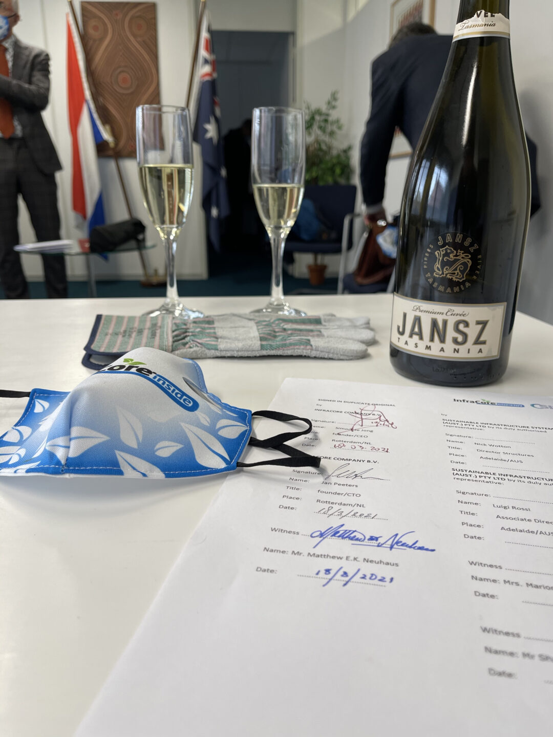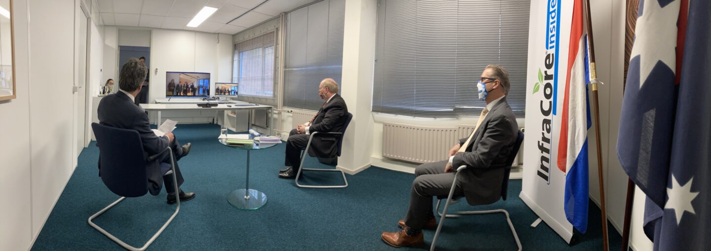 Canberra (AU)/The Hague (NL), March 18, 2021 – Witnessed by Mrs. Marion Derckx, the Netherlands Ambassador to Australia in Canberra and Mr. Matthew E.K. Neuhaus, the Australian Ambassador to The Netherlands in The Hague, SIS Sustainable Infrastructure Systems and InfraCore Company signed an agreement to license the InfraCore®technology in Australia, New Zealand and the Pacific Islands.