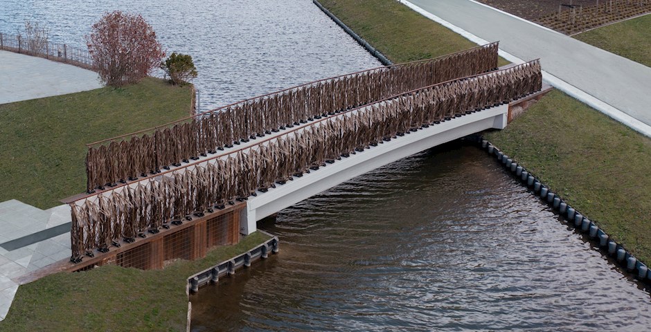 These so-called “Smart Circular Bridges” are made of bio-composites. Like conventional composites, they consist of two materials: natural fibers such as flax and hemp provide the stiffness and strength, and the bio-resin binds the fibers together, resulting in a strong and lightweight material. Bio-composites offer great freedom of form and allow structurally optimized and material-efficient – yet elegant – designs.