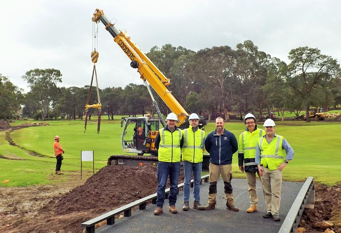 A first in Australia! Recently, our Australian agent SIS installed four durable prefabricated FiberCore Golf bridges on the grounds of the Castle Hill Country Club in Norwest, near Syndey. These are the first four of hopefully many bridges with our unique InfraCore® Inside technology that we may ship to Australia. These rock-solid maintenance-free bridges have a service life of more than 100 years.