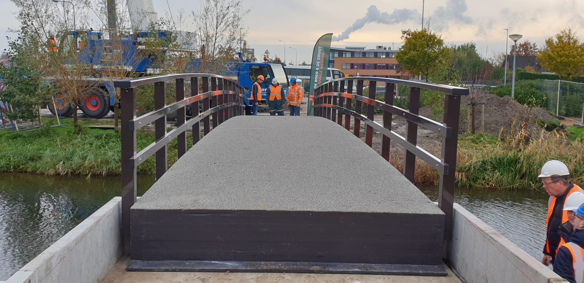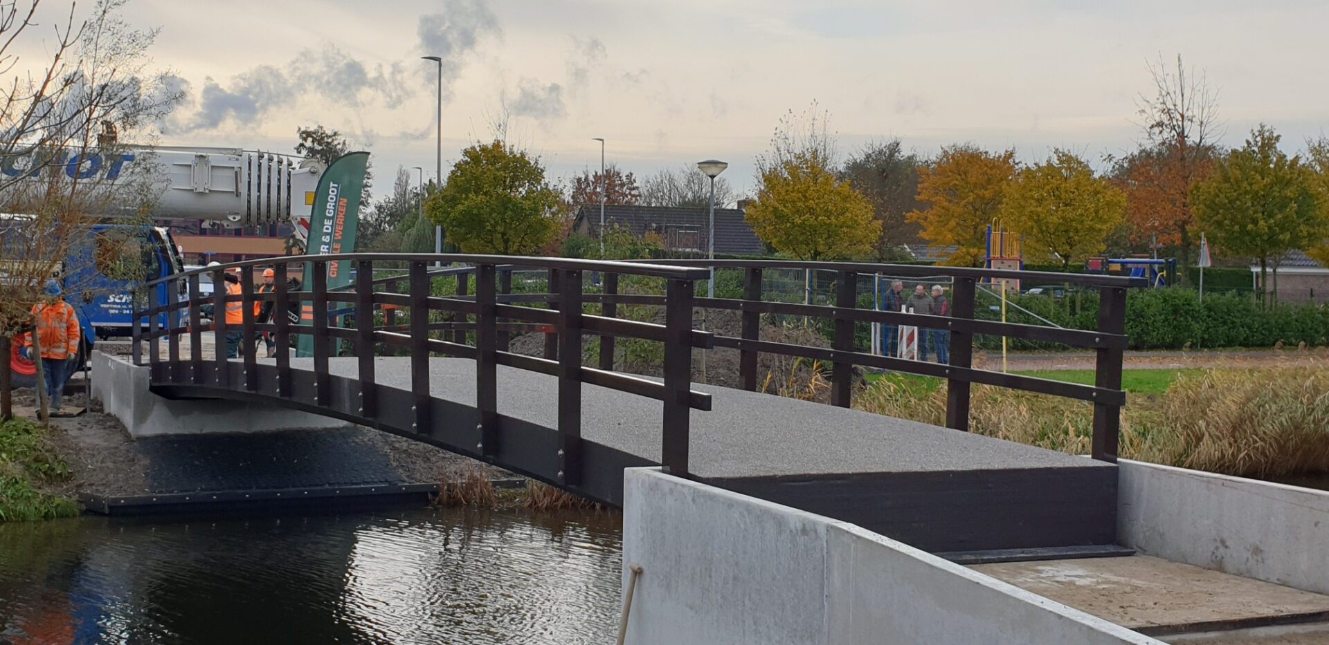 Deze brug aan de Laansloot in Gemeente Langedijk is tot stand gekomen met medewerking van de kinderschoolraden van de De Phoenix en De Koolvlet in Broek op Langedijk. Op deze wijze kunnen de kinderen op een veilige manier naar school gaan.