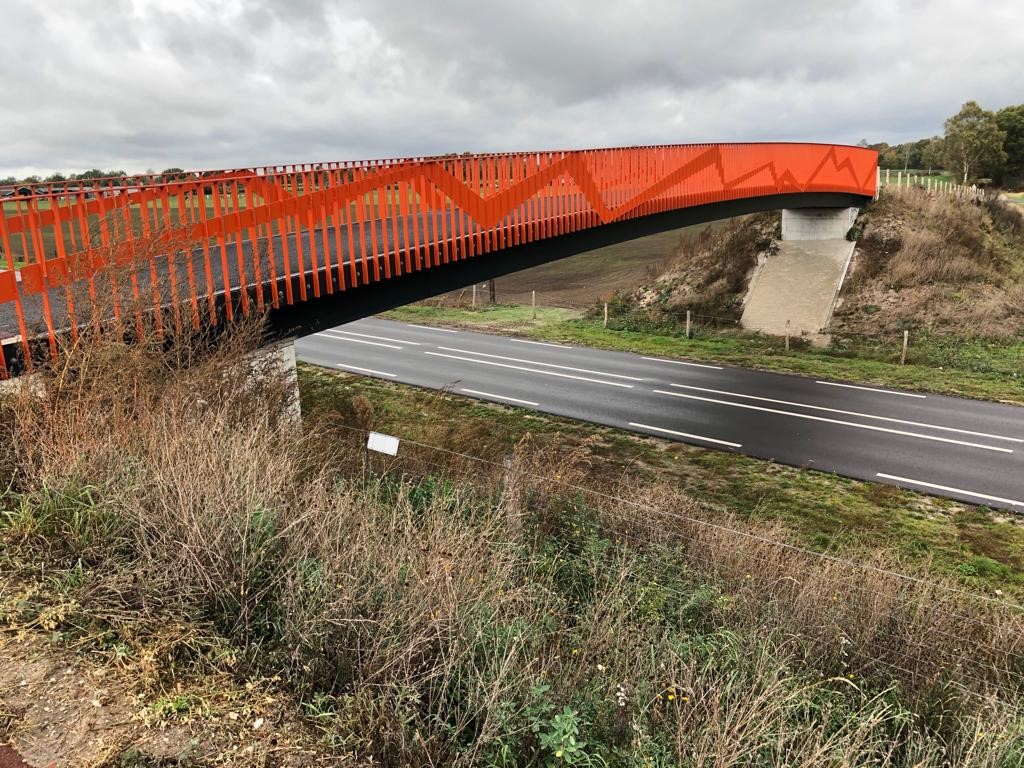 In opdracht van de provincie Noord-Brabant heeft FiberCore een fietsbrug gebouwd die onderdeel uitmaakt van het project Gemert Noord-Om dat door BAM Infra wordt uitgevoerd. De Noord-Om vormt vanaf eind 2017 de schakel tussen de N605 en de N272 die ten zuidoosten van Gemert loopt. Duurzaamheid en innovatie gaan hier hand in hand. Naast een bijzondere 3D geprinte fietsbrug en een ingeschoven rotonde bevindt zich over de nieuwe randweg de tot nu toe langste ingeklemde composiet brug onder de naam Lieve Vrouwesteeg: 37 meter vrije overspanning uit één stuk en een minimale bouwhoogte. De brug werd inclusief leuningen en slijtlaag ‘prefab’ bij FiberCore geproduceerd.