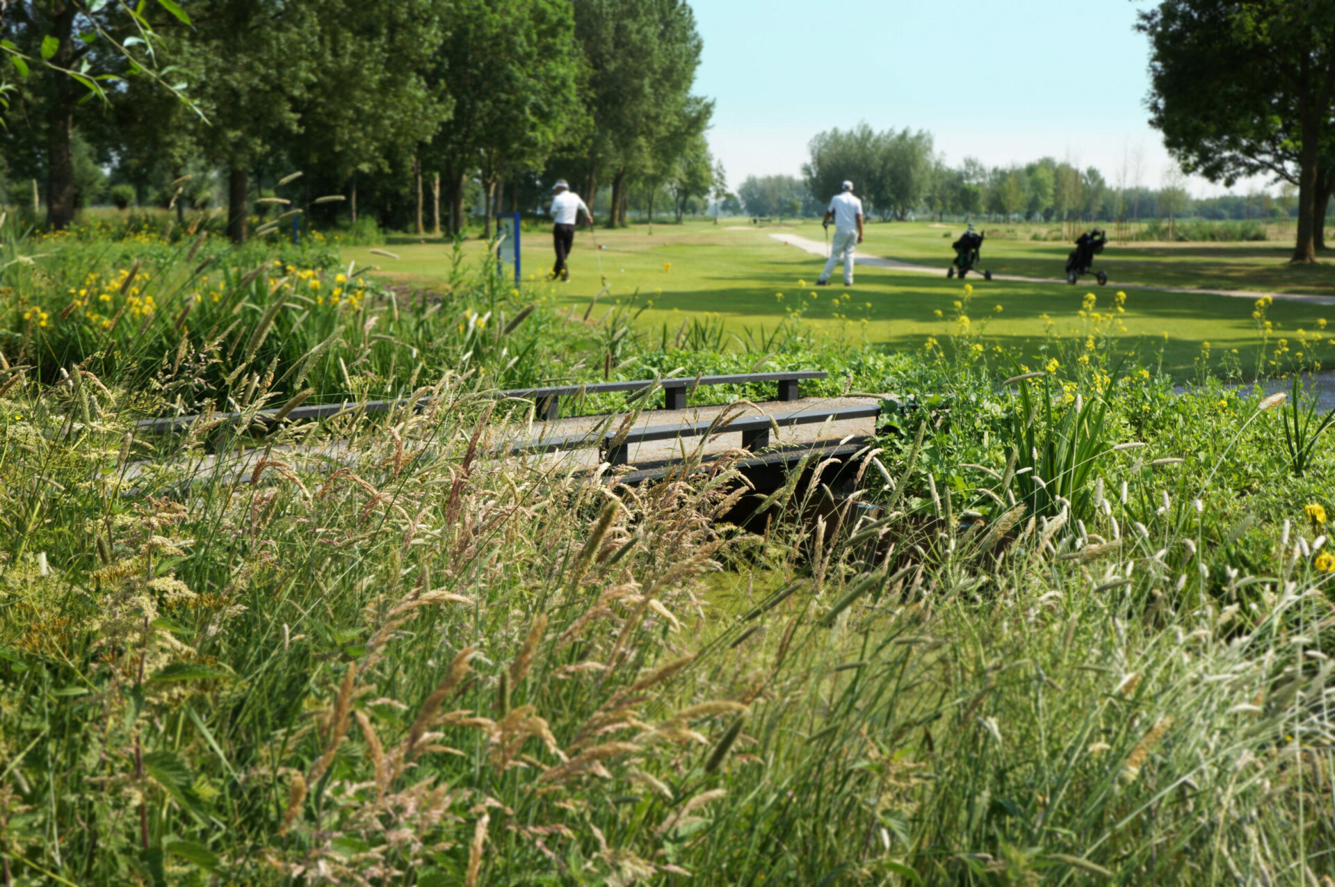 Op golfbaan Hitland zijn sinds 2021 vier onderhoudsvrije, non-slip golfbaanbruggen van FiberCore Europe met InfraCore® Inside te vinden (InfraCore® Golf Bridges).