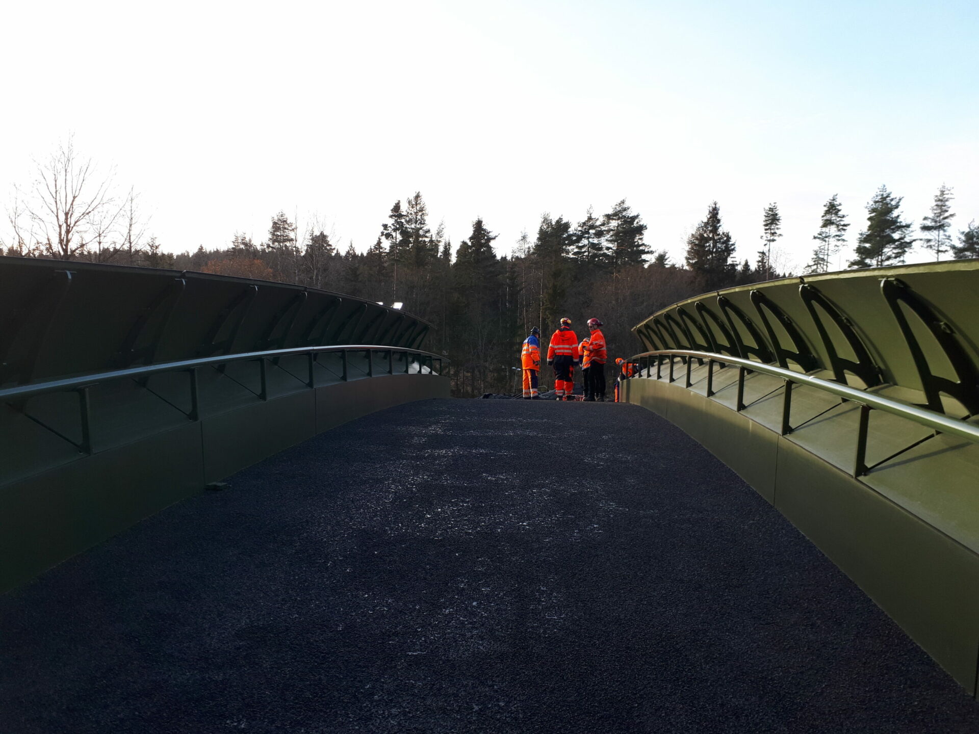 De brug maakt deel uit van de nieuw te bouwen noodcentrale voor hulpdiensten en zou volgens de eerste plannen in beton uitgevoerd worden. Opdrachtgever Ministerie van Justitie en aannemer Skanska kozen echter voor een duurzame en innovatieve oplossing; een lichtgewicht, onderhoudsvrije composiet brug met een bijzonder en praktisch ontwerp van Nordic Office of Architecture.