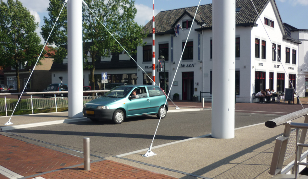 De hefbrug in Oosterwolde is in 2010 gerealiseerd als de eerste composiet 60 tons verkeersbrug ter wereld. De materiaalkeuze werd in hoge mate bepaald doordat het brugdek gedragen wordt door slechts twee pylonen, die niet in het midden van de brug zijn aangebracht. Hierdoor was een licht materiaal nodig om zodoende mogelijk te maken dat de val – zonder contragewicht in ingewikkelde constructies – hydraulisch bewogen kan worden. Dit was enkel met composiet mogelijk; in staal of beton had deze brug niet uitgevoerd kunnen worden. Daarnaast speelde ook het duurzame karakter (onderhoudsarm en lange levensduur) van composiet een rol.De brug is 12 meter lang en 11,2 meter breed. Het brugdek werd in twee delen getransporteerd naar Oosterwolde. Ter plaatse werden vervolgens de twee delen momentvast aan elkaar gekoppeld.
