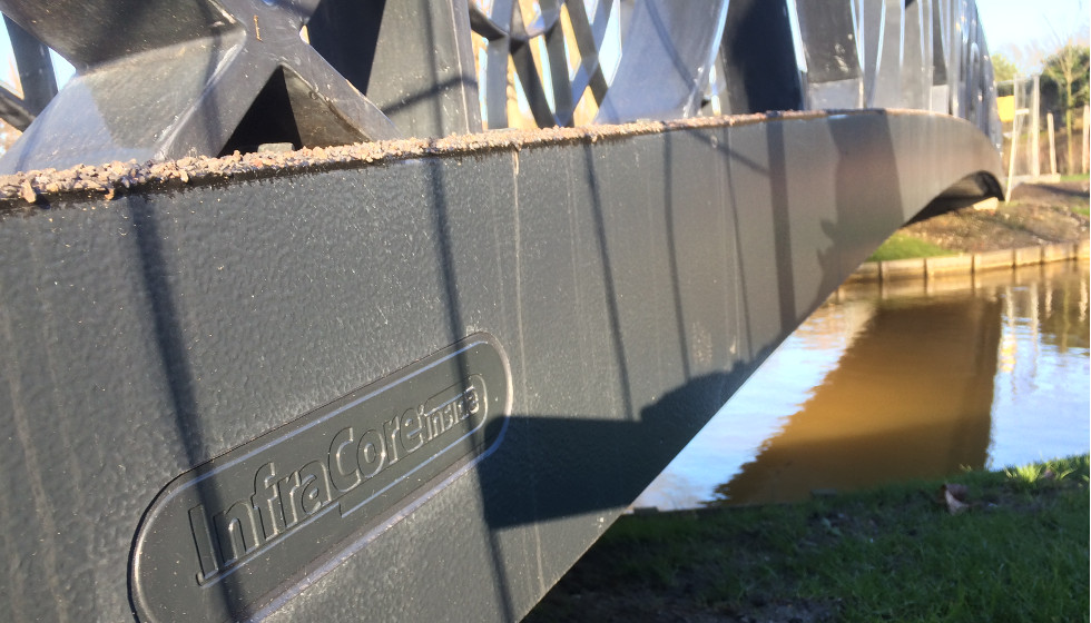Op woensdag 20 januari 2015 is over de Exercitiesingel een fiets-voetgangersbrug geplaatst met InfraCore Inside. De brug heeft een afmeting van 20 meter bij 1,9 meter. Toch is de brug slechts 250mm dik en daardoor heeft de brug een slank en strak uiterlijk. Daarnaast is er speciaal aan deze brug dat de abstract vormgegeven leuning volledig van vezelversterkte kunststof is gemaakt. De fiets-voetgangersbrug dient als overgang naar het pad richting de nabij gelegen begraafplaats, Kralingen-Crooswijk.