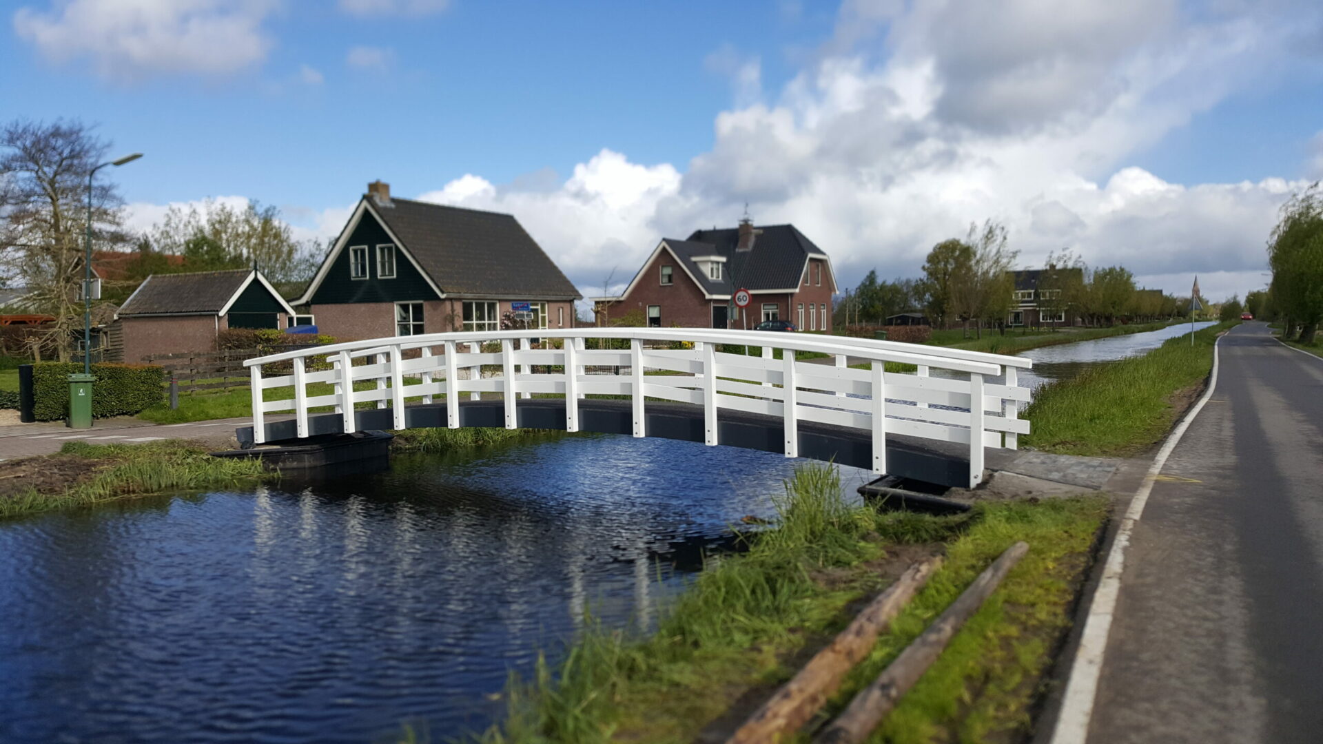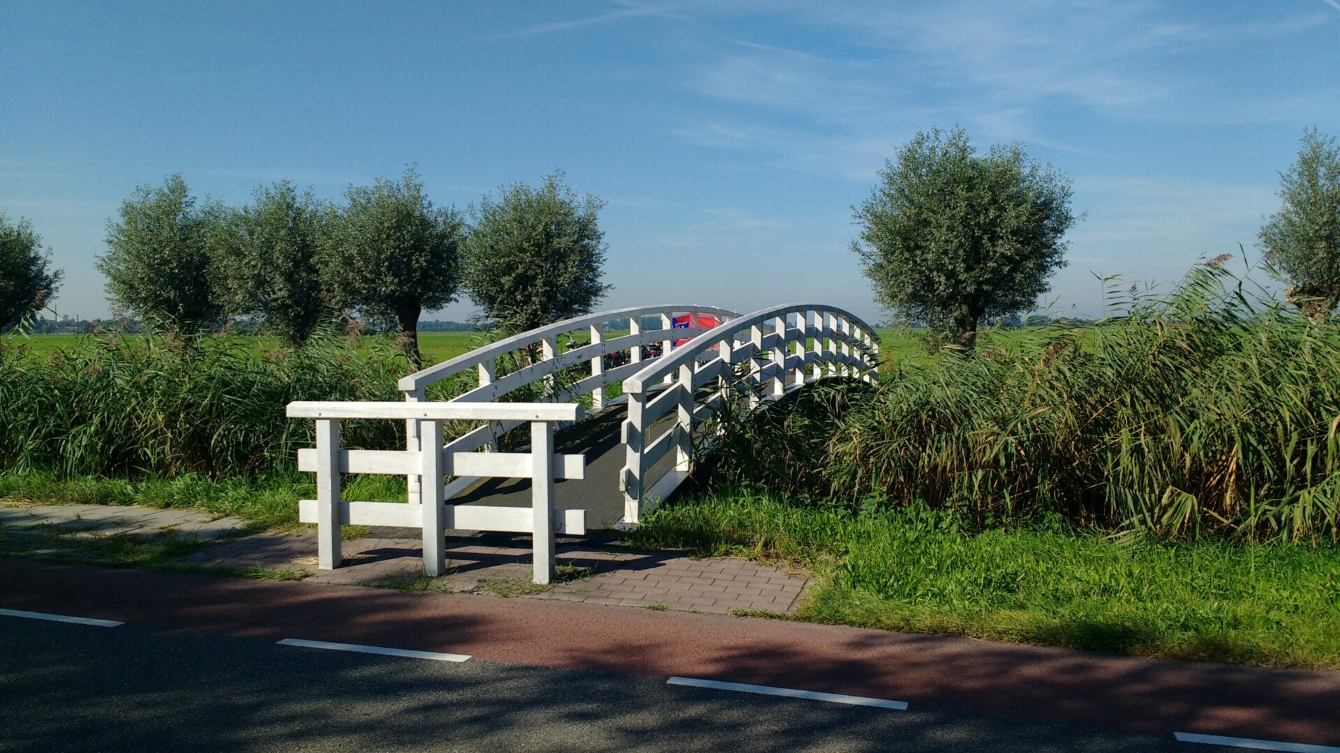Deze bruggen zien er vanaf een afstand net uit als ouderwetse houten bruggen in een typisch Nederlands polderlandschap, en dat is precies de bedoeling! In werkelijkheid zijn deze bruggen de gemoderniseerde versie; van composiet met leuningen van gerecycled kunststof.